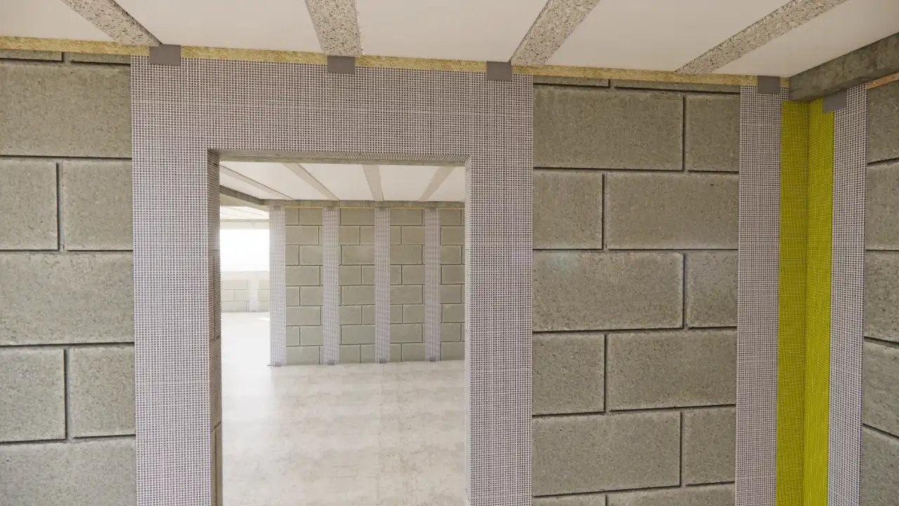 در نتیجه، بازشو های بلند نیازمند تقویت قابل اطمینان هستند و استفاده از ملات مسلح شده با مش الیاف می‌تواند این نیاز را بدون اجرای وادار سنتی برآورده کند.