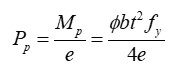 که در آن t ضخامت بال نبشی است (در اینجا 2 میلیمتر) و e بازوی لنگر نیروی وارده بر بال نبشی میباشد (در اینجا 25 میلیمتر) با برابر قرار دادن Pp با Pcon عرض لازم برای نبشی b به صورت زیر به دست میآید (ضریب کاهش مقاومت برابر 0.9 میباشد).